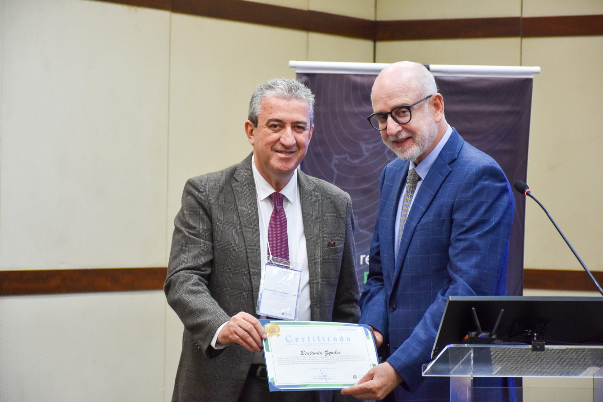 No período da tarde, os participantes acompanharam a palestra do ministro do Tribunal de Contas da União (TCU), Benjamin Zymler, que abordou o tema “Business Judgement Rule – A responsabilização da alta administração nos Conselhos Profissionais”, trazendo reflexões sobre a tomada de decisão e os limites de atuação dos gestores públicos.