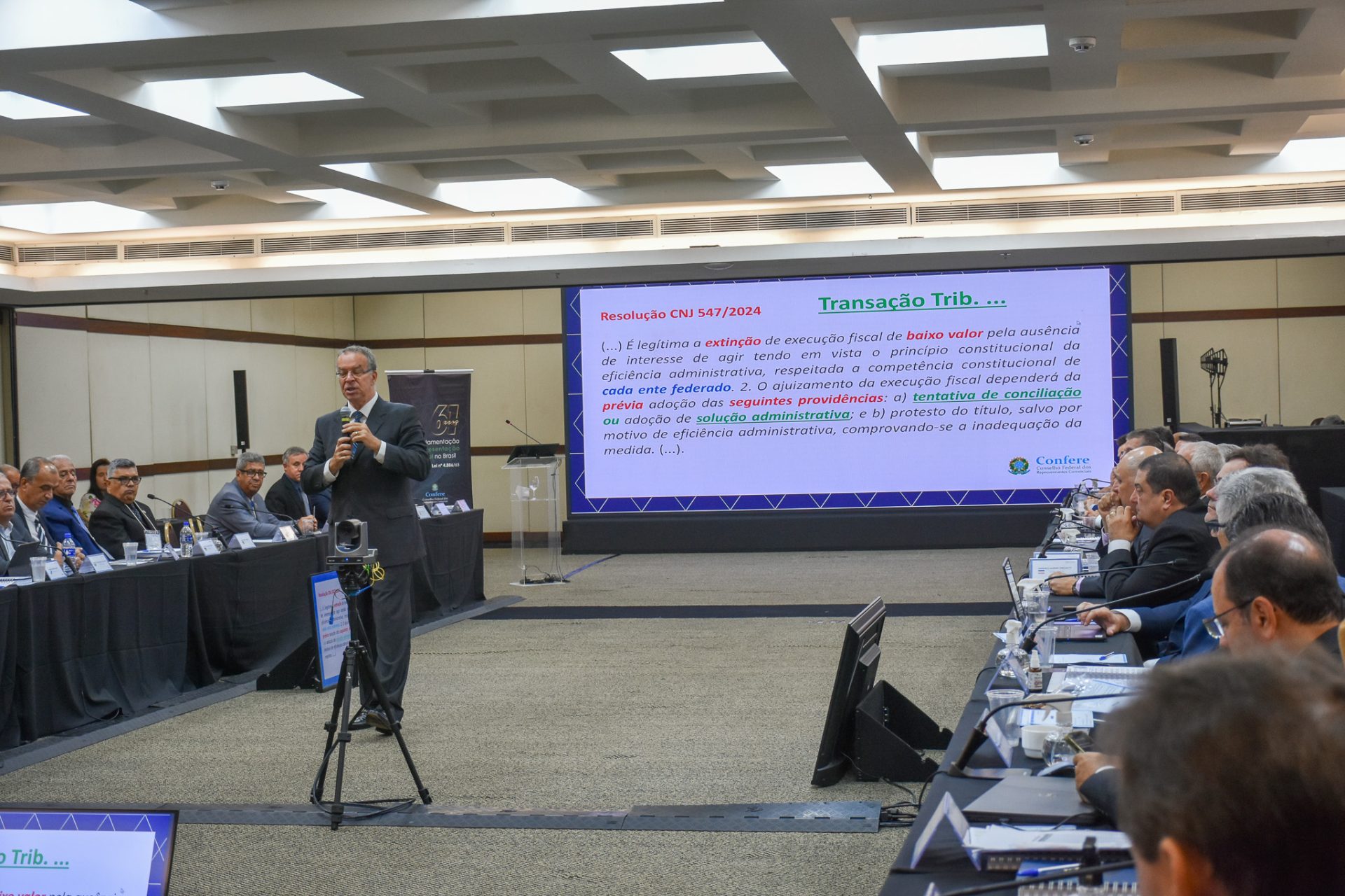 A apresentação trouxe uma análise técnica e prática sobre os mecanismos legais, administrativos e judiciais voltados à recuperação de créditos, com ênfase na importância da atuação estratégica dos Conselhos para garantir sustentabilidade financeira e efetividade institucional.